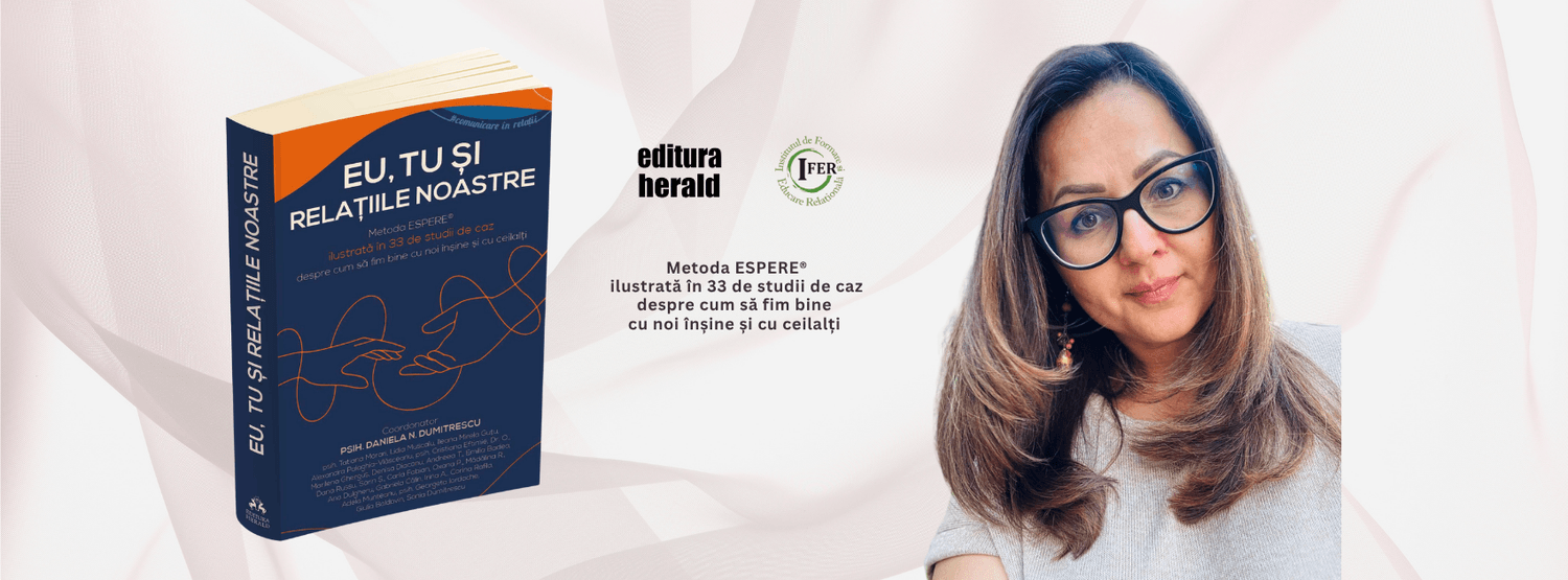 În mai 2025 a fost publicată la Editura Herald cartea „Eu, tu și relațiile noastre. Metoda ESPERE® ilustrată în 33 de studii de caz despre cum să fim bine cu noi înșine și cu ceilalți”. Am contribuit la acest volum în calitate de coautoare, semnând două capitole consistente: